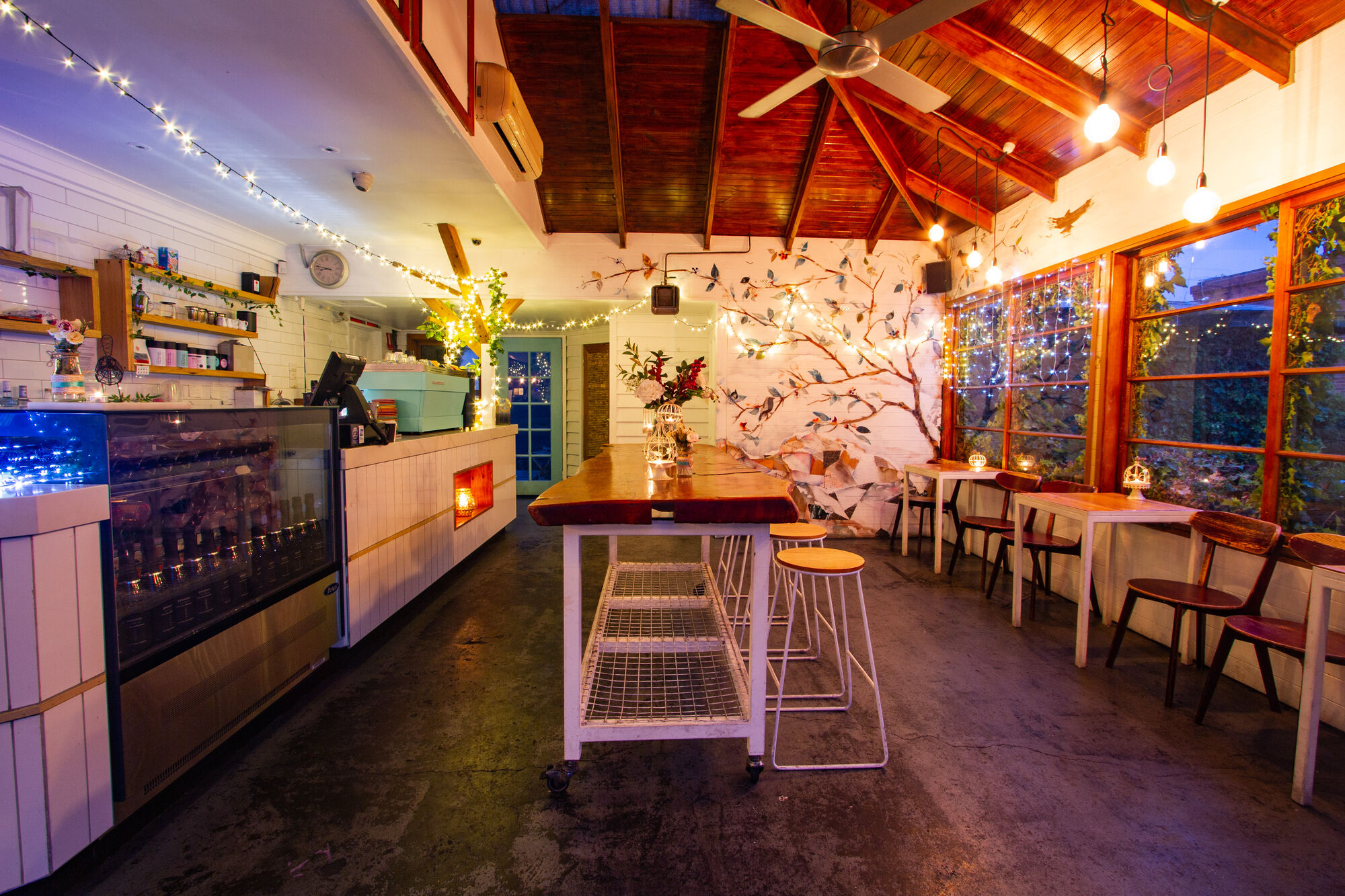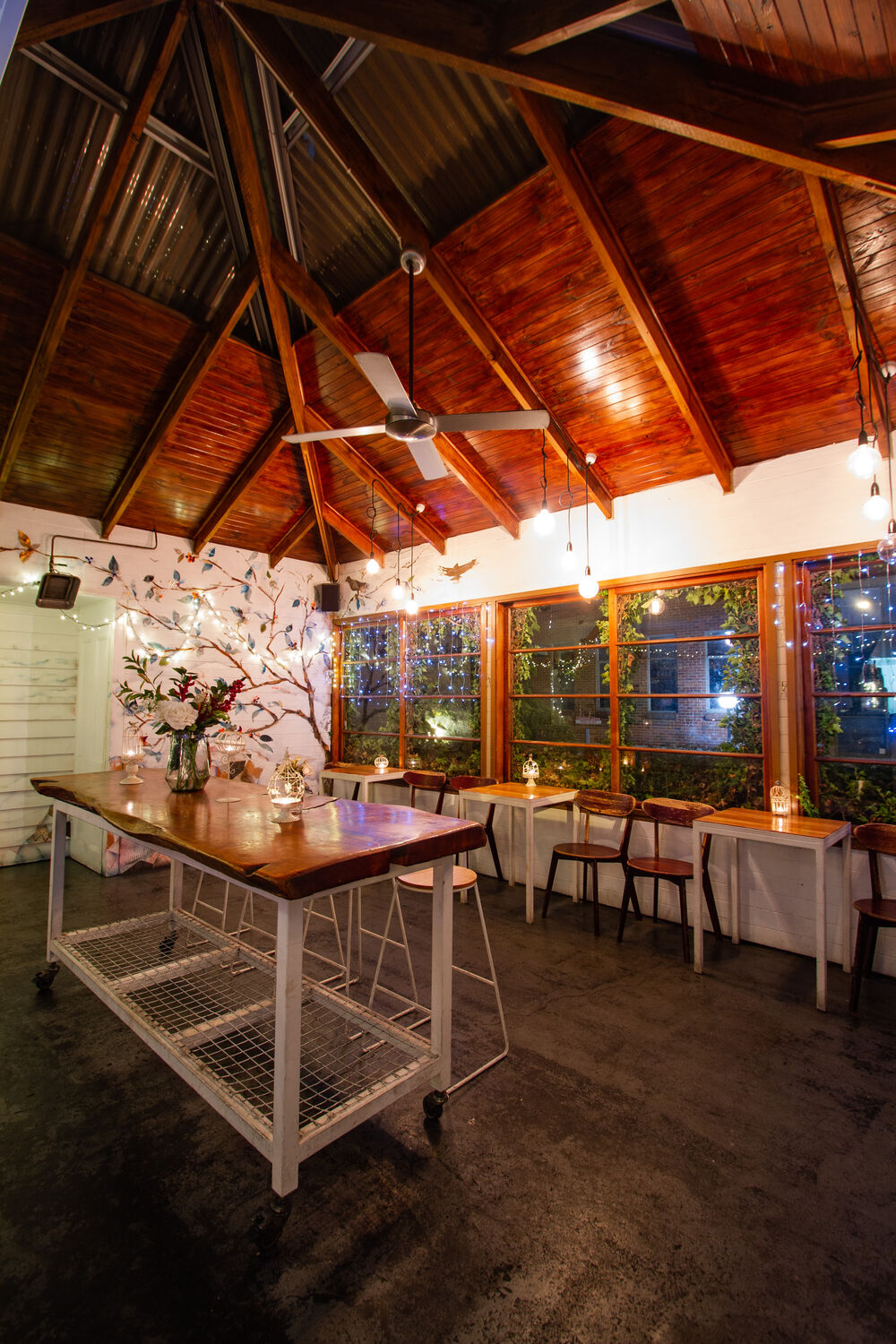 Our cozy blue stone building is café and restaurant by day, function space by night.